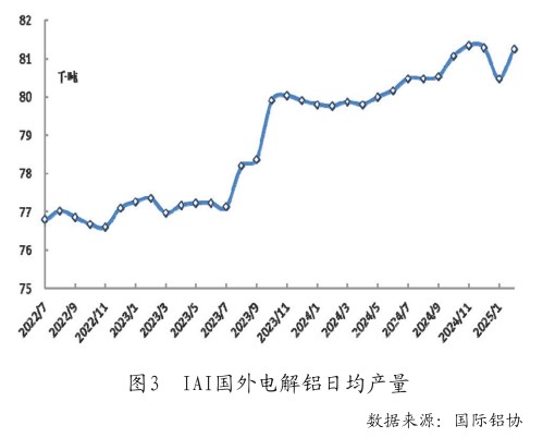 2025年2月海外電解鋁產(chǎn)量為227.5萬(wàn)噸,同比下降1.6%;日均產(chǎn)量8.1萬(wàn)噸,環(huán)比增加0.9%。盡管近幾年海外在建產(chǎn)能規(guī)模較大,但實(shí)際建設(shè)和投產(chǎn)進(jìn)度相對(duì)緩慢,其中華青鋁業(yè)二期25萬(wàn)噸/年于2024年建成投產(chǎn),去年11月份曾因成本問(wèn)題暫停投產(chǎn),但隨著鋁價(jià)上漲和氧化鋁價(jià)格的下跌,已于2025年一季度全部投產(chǎn),實(shí)現(xiàn)了約50萬(wàn)噸/年滿負(fù)荷運(yùn)行。預(yù)計(jì)2025年三季度會(huì)有其它新項(xiàng)目陸續(xù)釋放。歐美等地區(qū)停產(chǎn)產(chǎn)能的恢復(fù)進(jìn)度也不及預(yù)期,使得海外供應(yīng)能力提升速度整體受到限制。其中德國(guó)Trimet旗下Essen、Hamburg和Voerde三家電解鋁廠復(fù)產(chǎn)工作正在進(jìn)行中。