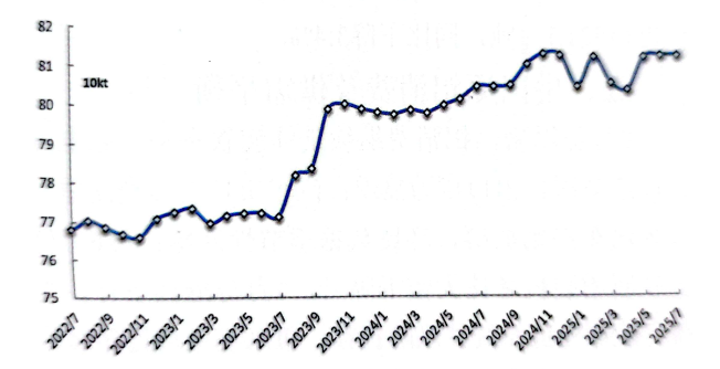 經(jīng)調整,7月份產(chǎn)量為376.4萬噸;預計8月份產(chǎn)量為376.5萬噸,同比增長1.2%,環(huán)比基本持平。