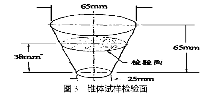 距底部38mm的橫截面為標準檢驗平面 ( 圖3) 。為此, 從距底部40mm 處與軸線(xiàn)呈正切方面切取試樣,在截體側面打上試樣號。