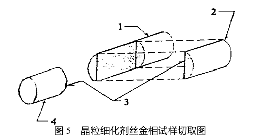 絲:從一卷任意部取一段要求重量的晶粒細化劑;金相檢驗試樣的縱、橫截面如圖5所示;機械性能測量試樣長(cháng)度應保證300mm。